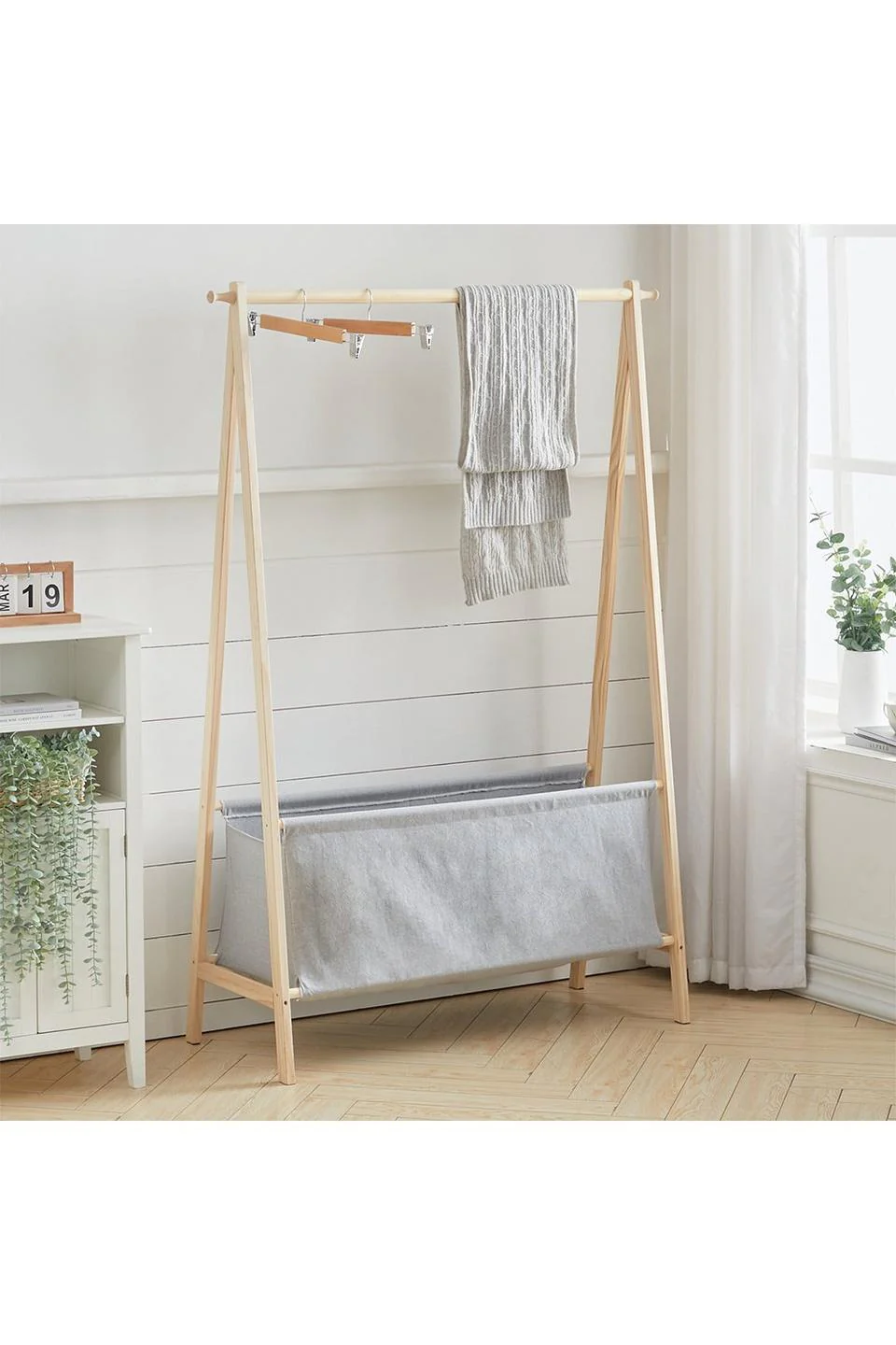 - 1 * Portable Clothing Storage Solution Wooden Garment Rack.